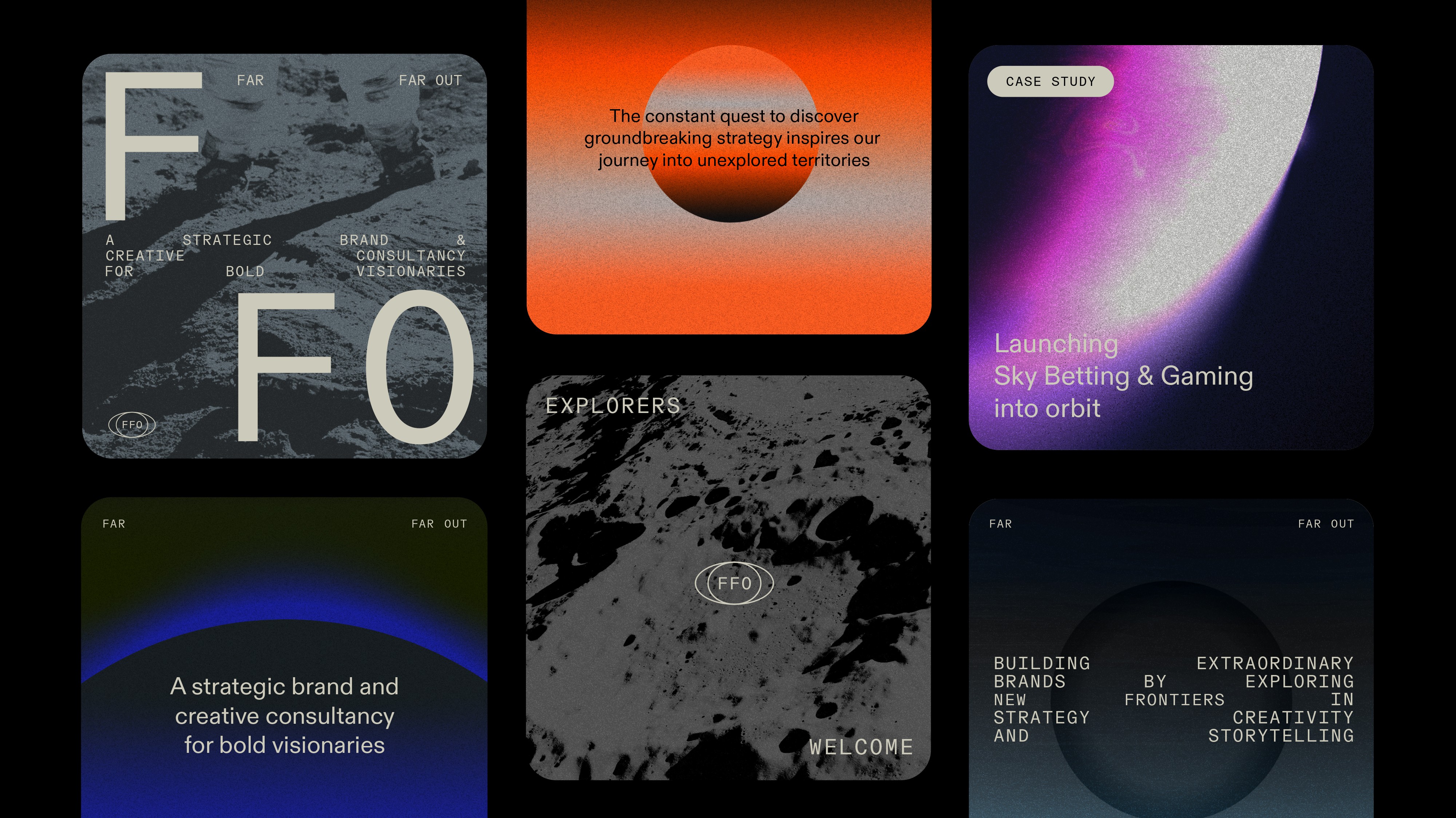 I was approached by a startup strategic agency called Far Far Out to develop a brand and visual identity that reflected their commitment to bold thinking, exploration and storytelling. The client had a unique vision for the project and required a creative partner to not only execute but expand and develop on their initial creative idea.