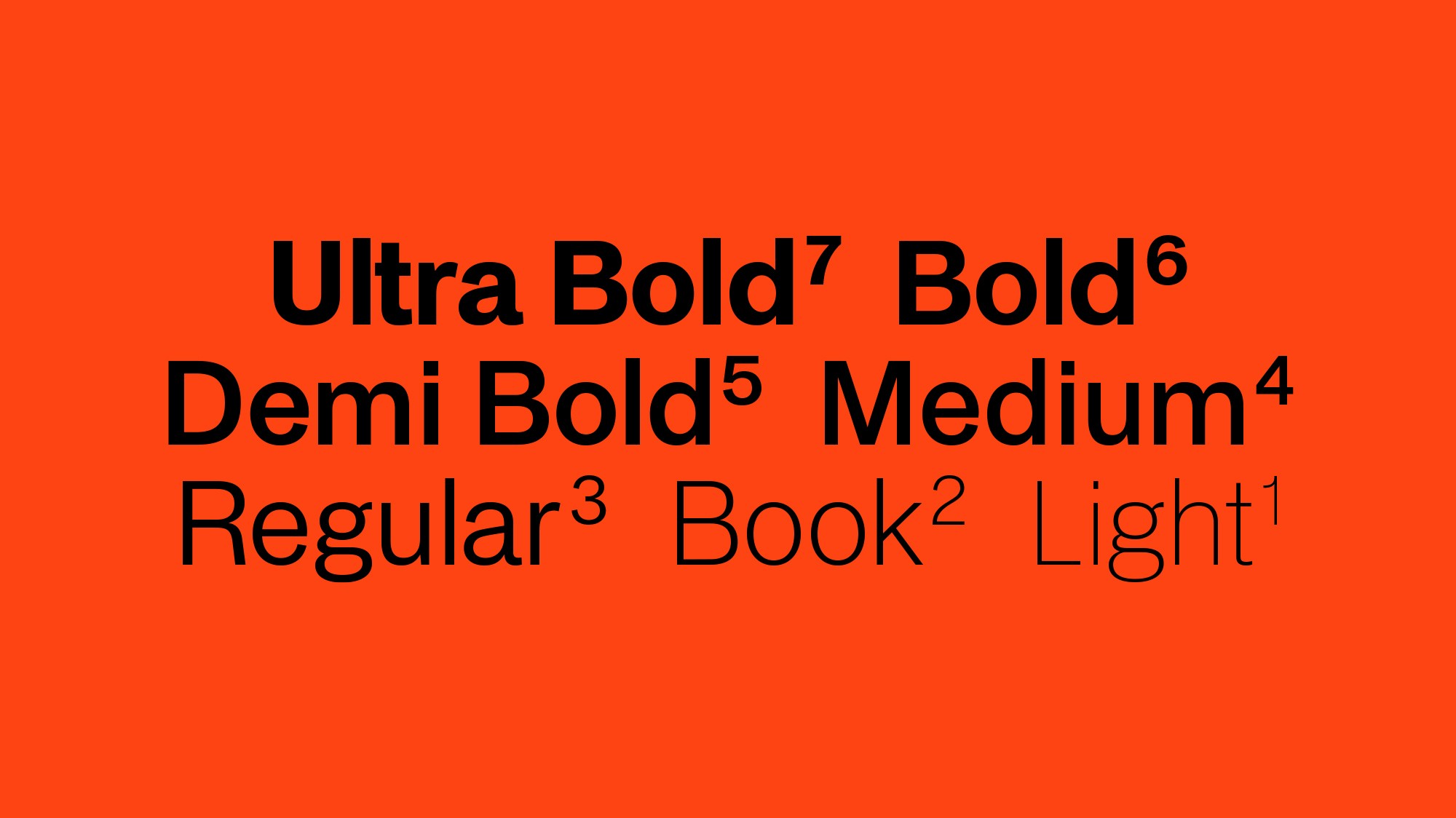 Crafted in 7 weights ranging from Light to Ultra Bold.